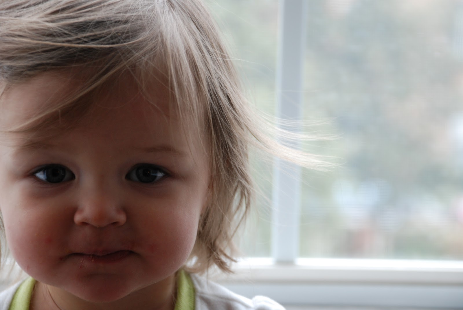 We have since gotten Cate a hat to wear in the colder weather, though it doesn't last long!